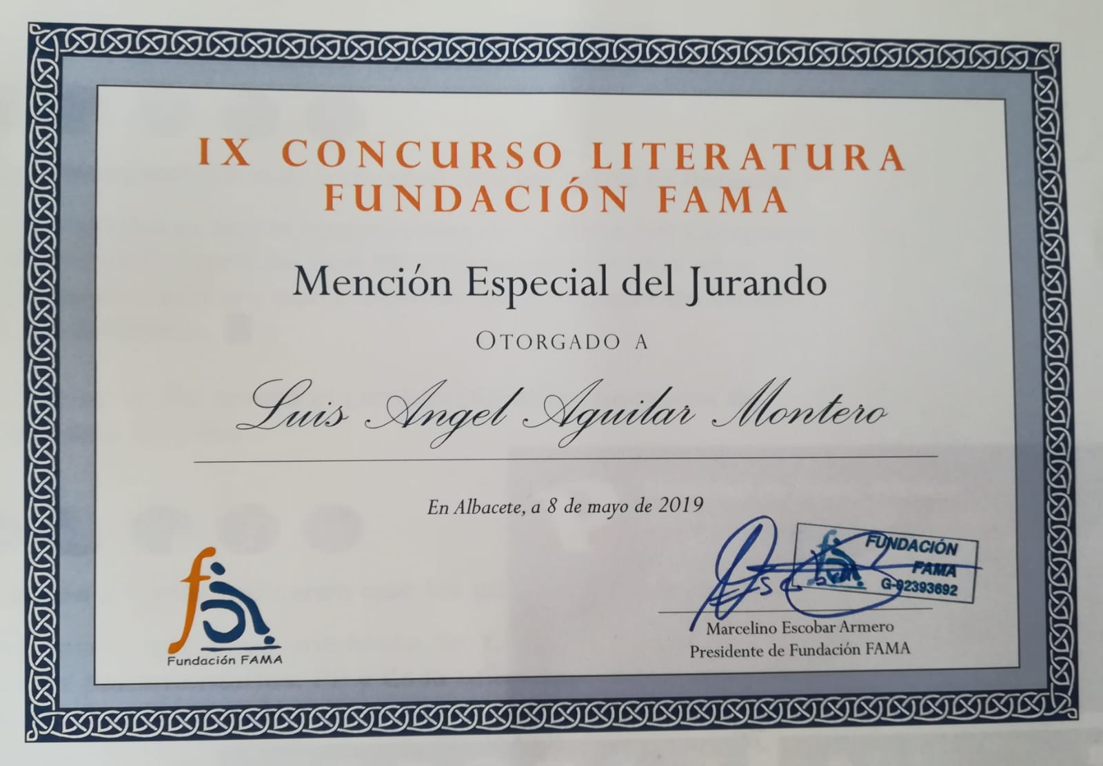 Fue ayer 8 de mayo, en el Centro Infanta Leonor de Albacete, donde tuvo lugar la Gala de entrega de premios, y con el mismo pudor con el que lo leí, aquí lo ofrezco a quien pueda interesar.