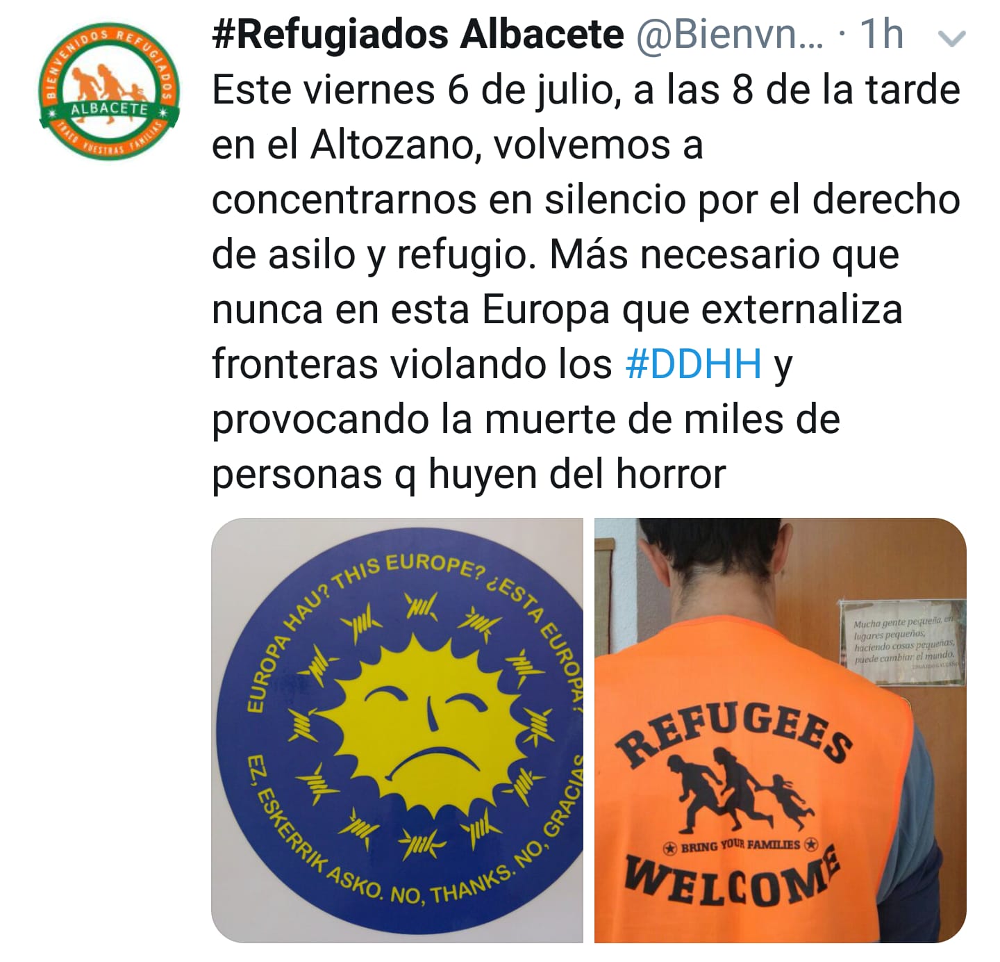 De momento desde la Plataforma Bienvenidos Refugiados Albacete seguiremos concentrándonos, el próximo 6 de Julio, como todos los primeros viernes de mes, a las 20h en el Altozano, para intentar sostener ésa antorcha silenciosa y solidaria que nos devuelva a nuestras tradiciones humanistas y para recordarles a nuestros irresponsables políticos europeos que si no son ellos, seremos la ciudadanía quienes se lo exigiremos, porque SI SE PUEDE.
