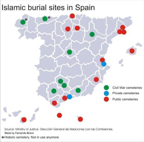 Sepa Ud que ya existen diversas experiencias de reserva de estos espacios en cementerios municipales, como este de la foto en Valencia. Incluso la de cementerios musulmanes que se construyeron durante la guerra civil y que al hilo de estas justas demandas, han vuelto a ser utilizados, como el de Griñón. Pero hay que hacer algo más, porque si bien la repatriación es hoy por hoy la principal opción, cada día es más costoso y hay menos subvenciones y recursos propios.