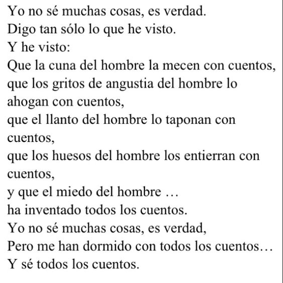 que la cuna del hombre la mecen con cuentos,