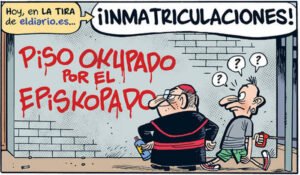 Imaginemos de qué magnitud estamos hablando cuando la propia Iglesia católica española, hace 4 años, admitió que “inmatriculó indebidamente,  al menos, 965 de los 35.000 inmuebles que puso a su nombre entre 1998 y 2015 gracias a la facultad que le otorgó la modificación del Reglamento Hipotecario decretada por el Gobierno de José María Aznar y que, además, vendió no menos de 122 viviendas y fincas de las que se había apropiado de esta manera”.