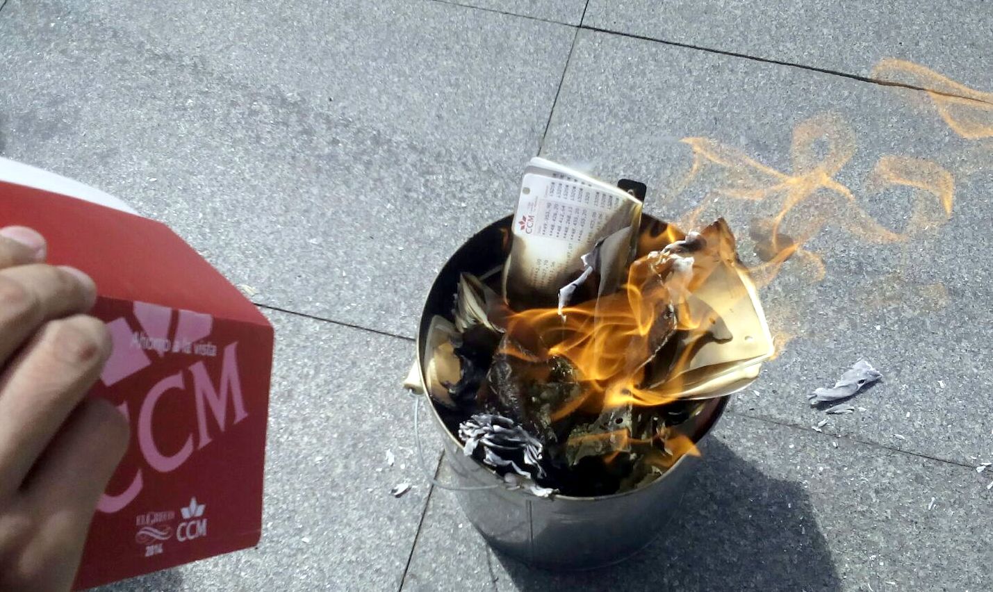 Stop Desahucios y su quema de cartillas de CCM-LIBERBANK en imágenes.